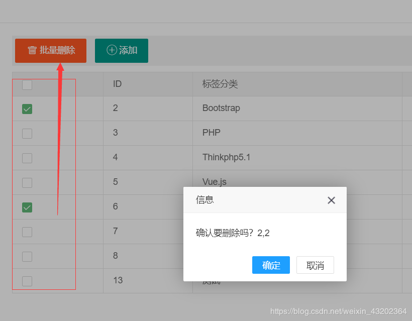 今天在做博客后台项目最后一个功能,就是使用layUI的多选功能进行删除勾选数据