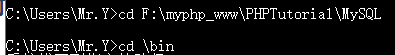 cd F:\myphp_www\PHPTutorial\MySQL\bin